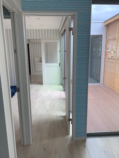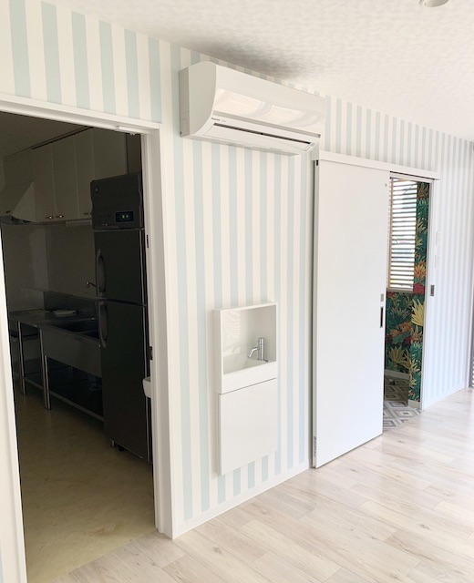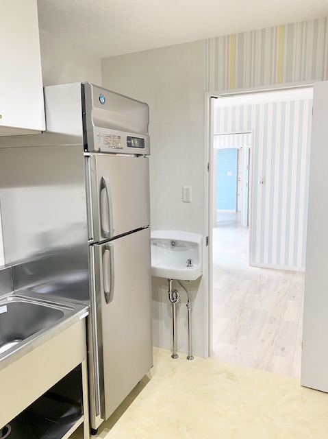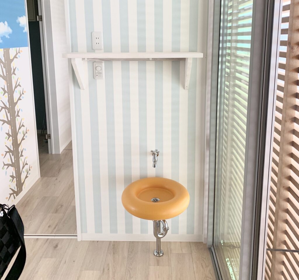 木をふんだんに使用しています。看板の「レインボー恵」さんの建物は奥のほうに少しだけ見えています。